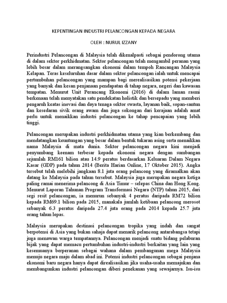 Kepentingan Industri Pelancongan Kepada Negara Pdf